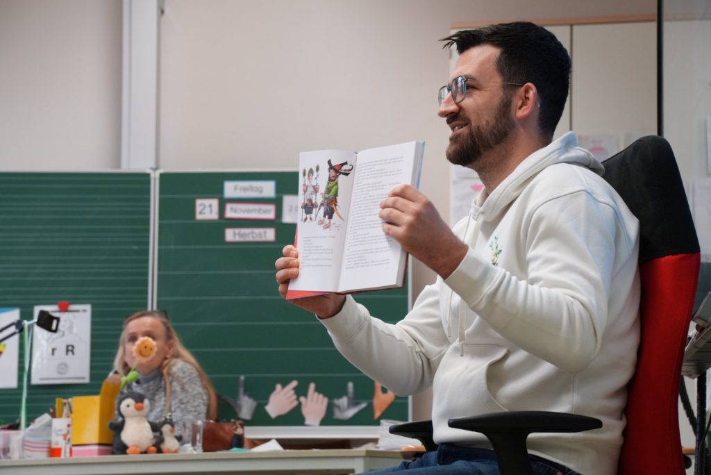 Auf dem Programm stand zunächst ein echter Kinderbuchklassiker: „Der Räuber Hotzenplotz“. Das Buch ist nicht nur seit Generationen beliebt, sondern war auch das Lieblingsbuch des Bürgermeisters in seiner eigenen Kindheit, wie er den Kindern zu Beginn verriet. Viele der Schülerinnen und Schüler kannten die Abenteuer des Räubers bereits, lauschten aber dennoch gespannt der lebendigen Lesung. Anschließend folgte ein Auszug aus dem modernen, zur nahenden Adventszeit passenden Buch „Das Weihnachtsmann-Projekt“, das spürbar Vorfreude auf die anstehenden Feiertage weckte.