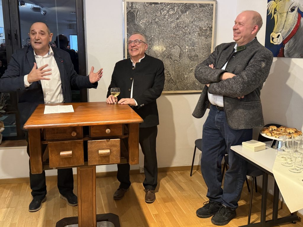 Bildtext: Georg Jungmann, Herbert Germann, OB Marc Speicher und Bernd Hawner bei der Eröffnung des LisDorfHauses. Fotos: Sascha Schmidt