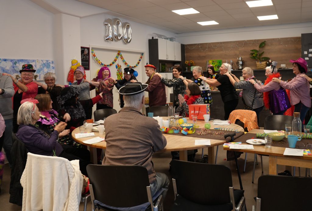 Im Rahmen des Seniorentreffs im Esther-Bejarano-Haus wurde ausgelassen Fastnacht gefeiert. In geselliger Runde kamen die Seniorinnen und Senioren zusammen und ließen sich Berliner sowie selbst mitgebrachte Salate, Kuchen und andere Köstlichkeiten schmecken, die zu einem vielfältigen Buffet beitrugen.