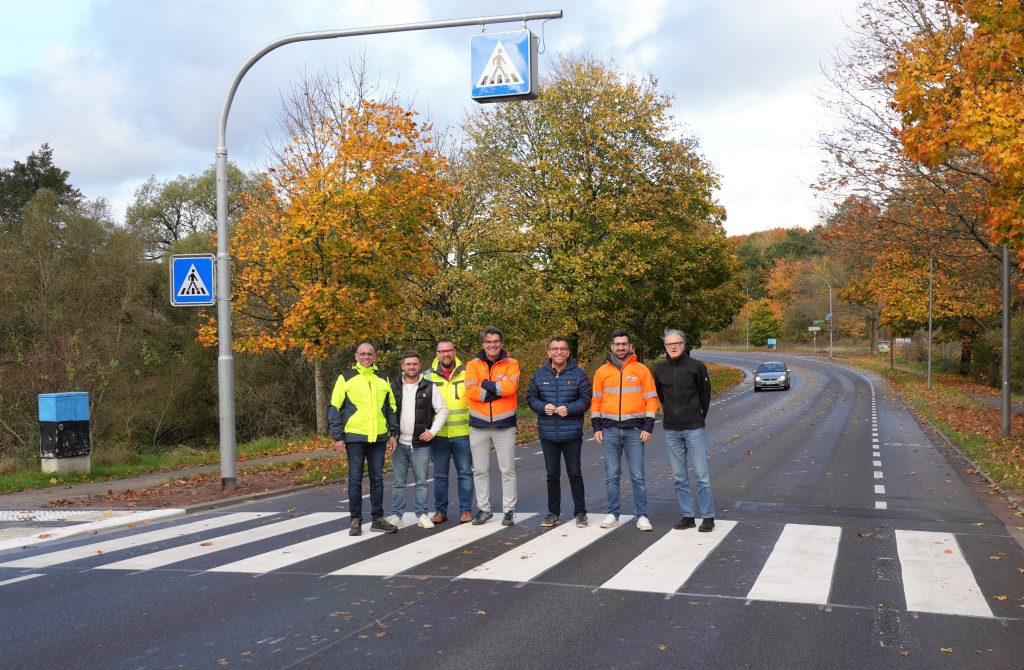 An der bislang gefährlichen Stelle, an der die Straßenseite meist ohne entsprechende Hinweise auf Fußgänger gewechselt wurde und die vor allem in der dunklen Jahreszeit leicht unterschätzt wird, haben Fußgängerinnen und Fußgänger nun eine deutlich sicherere Möglichkeit, die Straße zu überqueren.