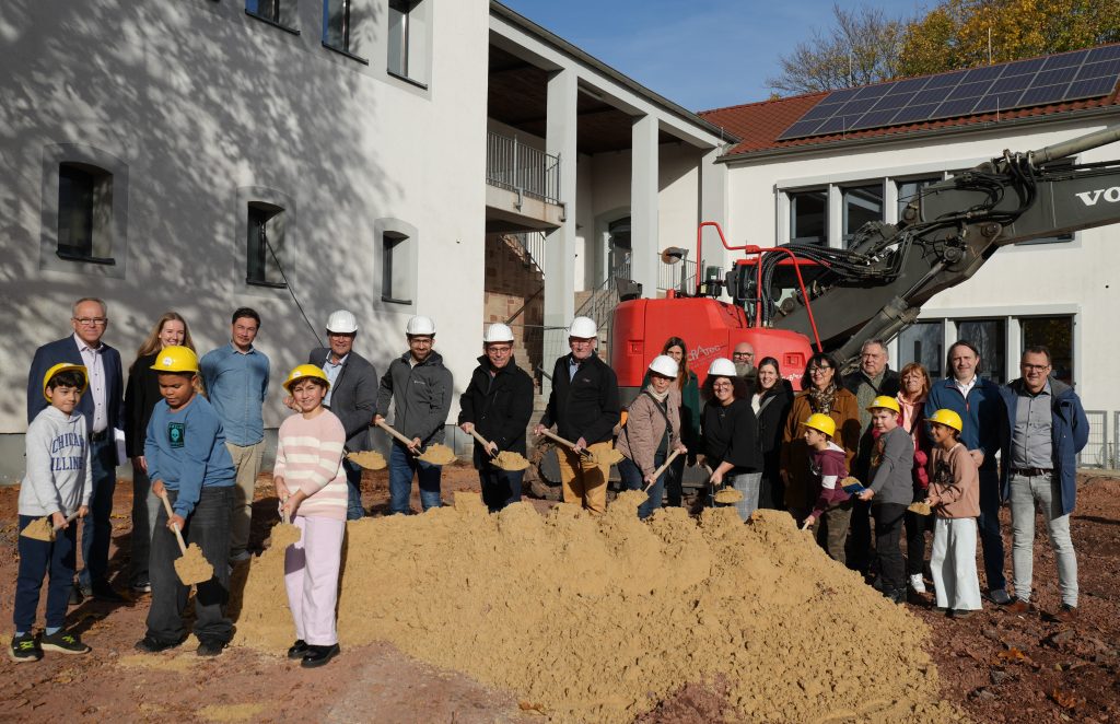 Anschließend griffen Verwaltungsspitze, die weiteren Beteiligten sowie ein paar Kinder der FGTS gemeinsam zum Spaten und setzten symbolisch den ersten Schritt in Richtung eines neuen Schulhofs.
