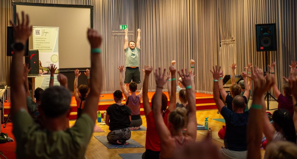 „Beim therapeutischen Yoga geht es darum, den Körper stabil und gesund auszurichten“, erklärte Julia Trabant, selbst Yoga-Lehrerin und Schülerin von Alexey Gaevskij, die gemeinsam mit ihm diesen dreitägigen Workshop veranstaltet. Der Kurs besteht aus vier Modulen, wobei es neben dem therapeutischen Yoga auch um die Vermittlung von Achtsamkeit, Haltung und mentaler Gesundheit geht. Nach einem motivierenden Auftakt am Freitagabend mit Kraft, Balance und Bewegungsfreude steht am Samstag der Rücken im Mittelpunkt des Trainings. Gezielte Asanas, myofasziale Mobilisation und bewusste Atmung stehen am Vormittag auf dem Programm. Am Nachmittag liegt der Focus auf Hüften, Atmung und innerer Balance. Durch achtsame Haltungen und gezielte Mobilisation entsteht Raum für Entspannung und emotionale Weite. Am Sonntagmorgen endet der Workshop mit einem Slow Flow. Sanfte Bewegungen, Dehnungen und bewusstes Atmen verbinden sich zu einer Praxis der Regeneration und sorgen so für völlige Entspannung.